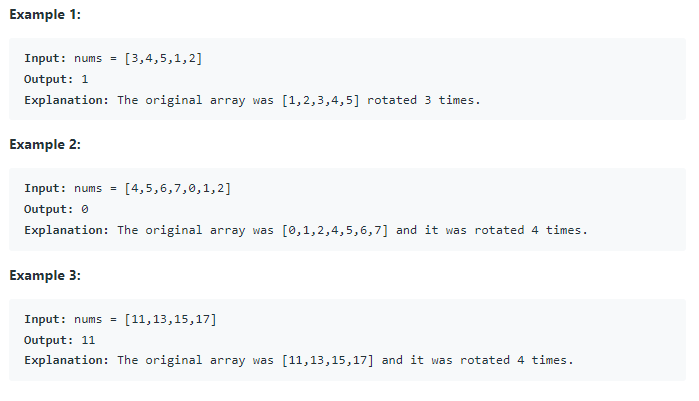 Find Minimum in Rotated Sorted Array 문제는 다음과 같다.