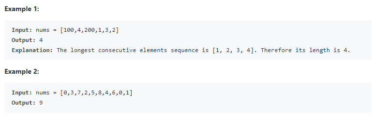 주어진 정렬되지 않은 정수 배열에 대해 연속되는 가장 긴 수열의 길이를 리턴하여라. 반드시 O(n) 시간 내에 실행되는 알고리즘을 작성해야 한다.