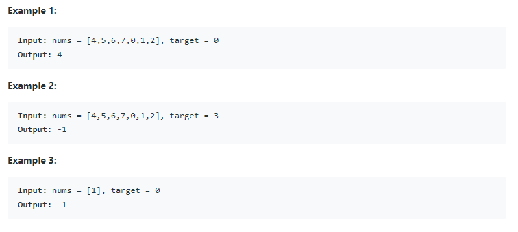 O(log n) 시간복잡도의 코드를 작성하라는 것은 이진탐색으로 target을 찾으라는 것이다. < Find Minimum in Rotated Sorted Array > 문제에서 가장 작은 원소를 찾는 알고리즘을 구현했기 때문에 최소 원소의 위치를 아는 상태에서 이진 탐색을 하기란 굉장히 쉽다. ( Find Minimum in Rotated Sorted Array 알고리즘은 아래 링크 참고해주시면 됩니다.)